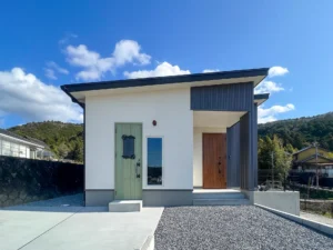 田辺市下三栖 Y.A様 新築工事更新しました 2023年7月18日 最終更新日時 : 2026年1月18日 hiranowp 広めの玄関にはシューズクローク、17畳のLDKには折れ戸で隠せるパントリー、ちょっとした作業が可能なスペースも設けました。二階は、6畳が二部屋・8畳のお部屋にはウォークインクローゼットを。随所にブルーやグレーのアクセントクロスを使い、LDKの天井は木目調で個性的に。土地の特性を活かし、駐車スペースが玄関前と後ろに。日々の生活が機能的で楽しくなるような建物が完成しました。